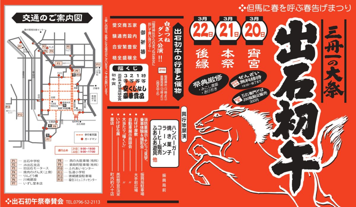 | 問合せ | 出石初午祭奉賛会(豊岡市商工会出石支部内) TEL/0796-52-2113 |