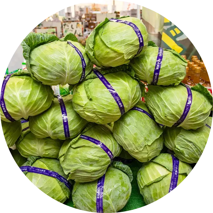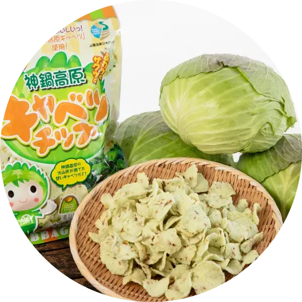 昼夜の寒暖差が大きい神鍋高原で育ったキャベツは、みずみずしく、甘みのある味わいが特長。神鍋高原キャベツの旨みを、サクッとひと口。