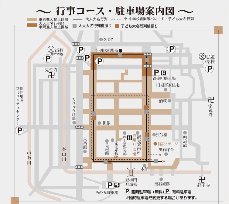 城下町出石ならではの秋の風物詩「出石お城まつり」は、今年も11月3日(月)に行われます。車両禁止区域等ございますので、お車でお越しの際はお気をつけてお越しくださいませ。