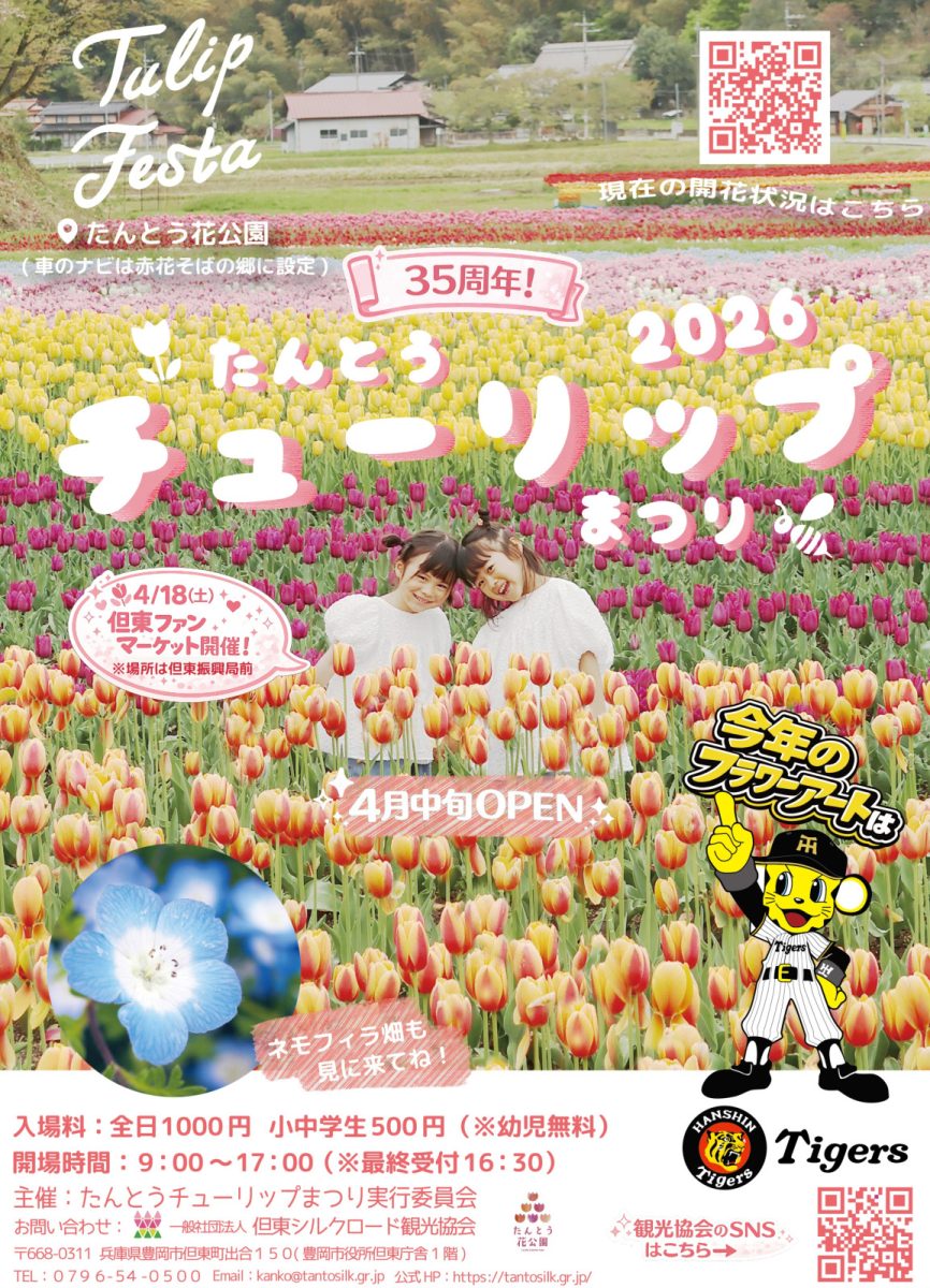 兵庫県豊岡市但東町(たんとうちょう)では、今年で35周年を迎える「たんとうチューリップまつり」が幕を開けます。