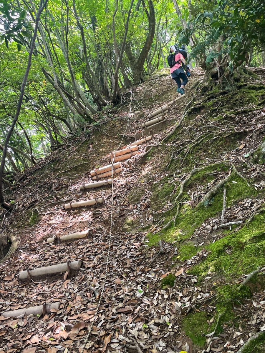 有子山城は「獅子の山城」と呼ばれています。その名の由来は山名氏が但馬の王者であったこととされています。またこれとは別にもう一つ理由があると考えるのは山名氏城跡保存会の川見さん。「有子山城跡まで向かう道中には『獅子の逆落とし』と呼ばれるほどきつい坂があります。山登りガイドをしていてもこの『獅子の逆落とし』の場所で断念してしまう人も少なくありません。」これら2つの理由がまさに「獅子の山城」と言われる由縁なのですね。