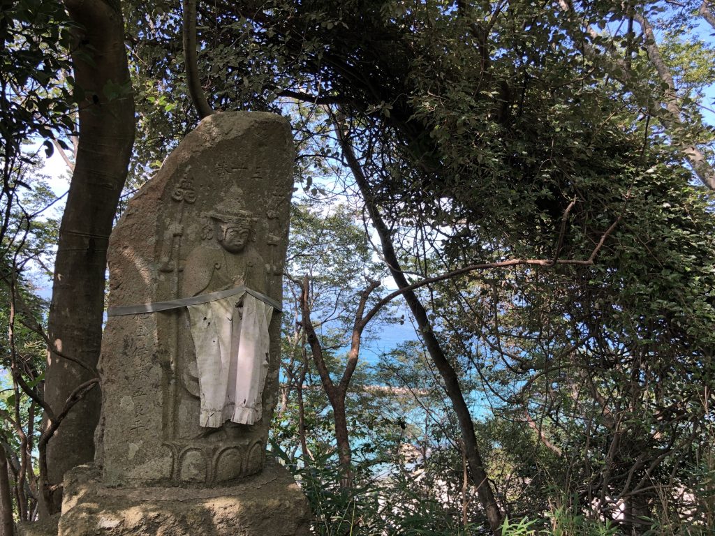 広い石段の遊歩道には西国三十三ヶ所観音霊場巡りの石仏が点々と佇んでいます。観音菩薩像は、江戸時代後期に村人の手により30余年の歳月をかけ、建立されたとされています。