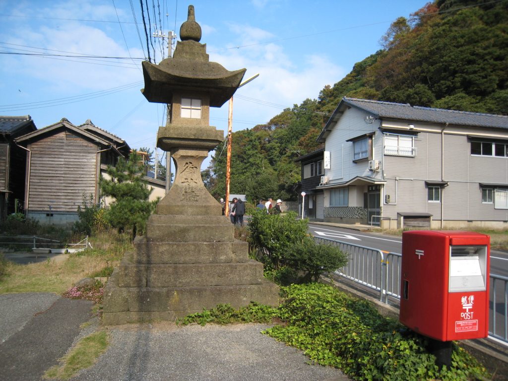 北前船が栄えていた時代に船主たちが、航海の安全を願い奉納したと言われています。高さは約5mほどあって、兵庫県内に残っているものの中で一番大きい御神燈です。