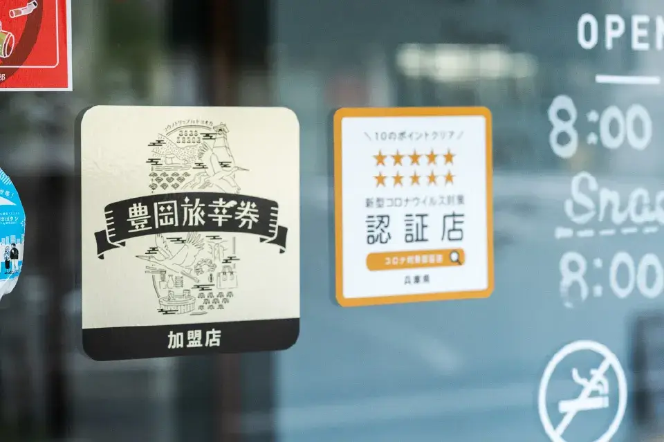 現時点、豊岡市で使えるクーポンの中で、一番使用期限が長いのは豊岡旅幸券です。一つひとつ店舗を回って、参加をお願いした甲斐もあり、使用できる店舗や施設も一番多いようですね。